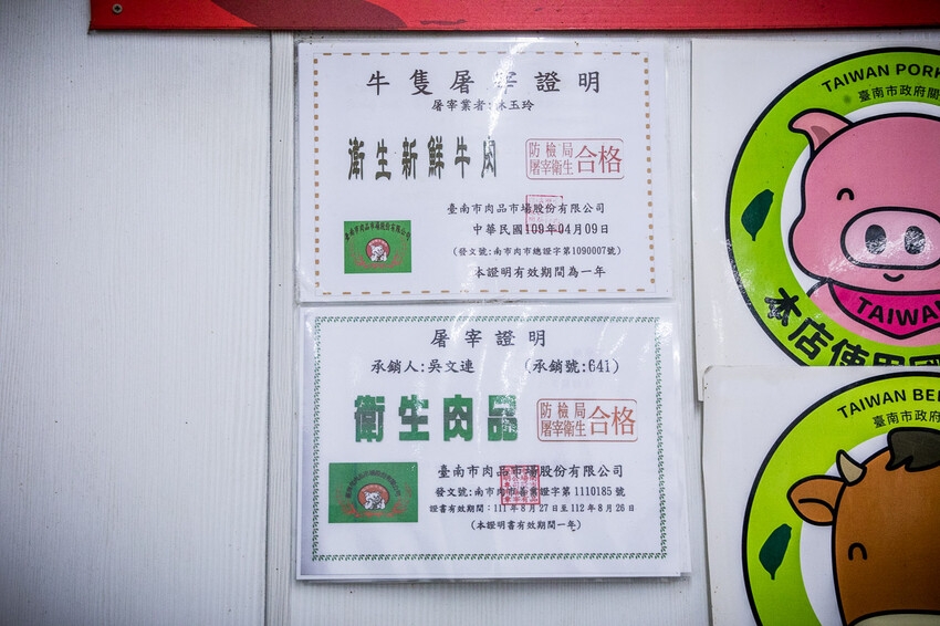 善化有全國規模最大的肉品屠宰場,全台溫體牛都從這裡直送,所以在善化的牛肉湯店直接都會從肉品市場進貨,從產地到餐桌最短距離,阿牛仔牛肉湯的牆上也有溫體牛的屠宰衛生證明
