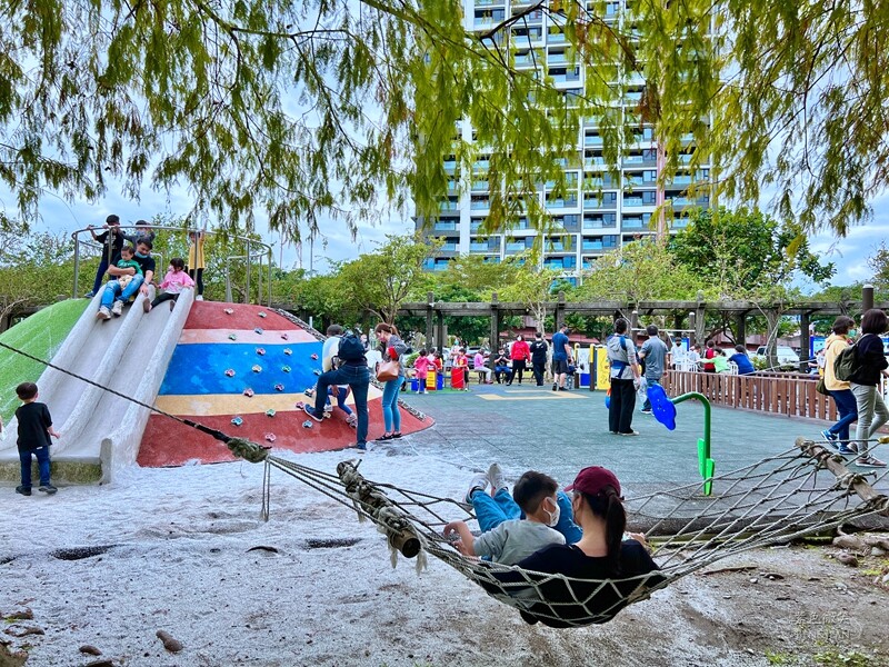 除提供所有孩童一同遊戲,也應允了家長的放鬆需求,可以在一旁看著孩子們玩的空間,這是個親子共融的友善運動公園