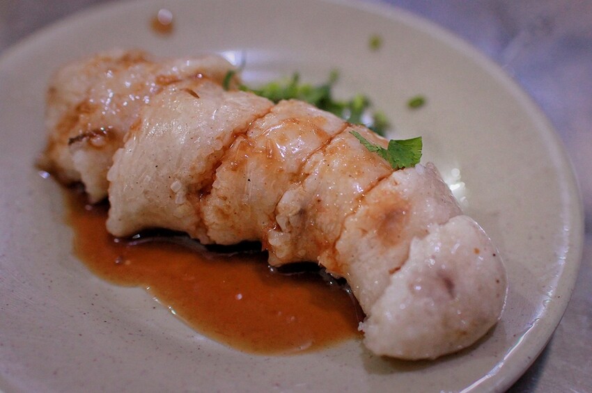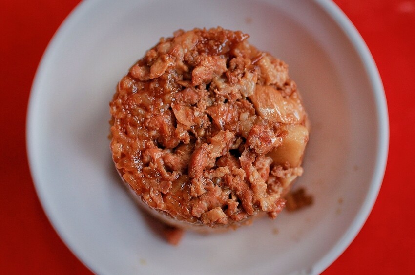這天來到民生路上看到董家三兄弟肉圓(四弟的店)也是大排長龍,生意也是好到爆,肉圓吃法當然就是要記得外皮吃到之後,留一些筍丁、肉末再去淋上大骨湯,肉圓二吃真的挺不錯。