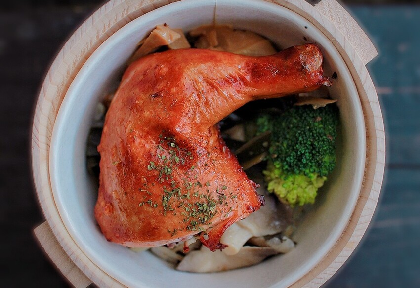 這天我們選擇的是燻烤雞腿木桶便當,自己是還滿喜歡他們的配菜以及雞腿的燻烤香氣,而外帶贈送的紅茶,Ann和榜哥都蠻喜歡的喔!