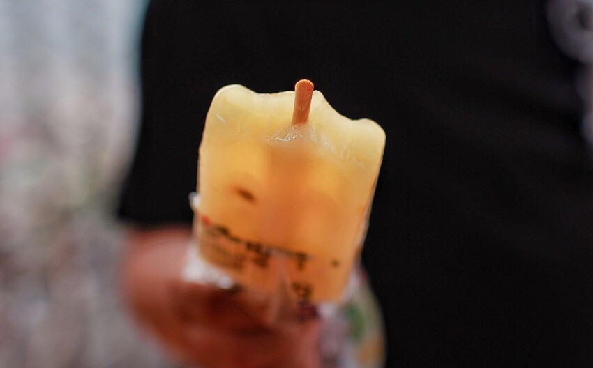 來到二坪大觀冰店要買冰,這邊有小規矩,那就是零售買散或是買標準箱裝(綜合冰、清冰)可以直接到櫃台去點選、付錢;而要自選裝箱的就要填單並抽號碼牌。這天我們就單純買了三支冰棒跟紅龍果冰淇淋來品嘗,自己蠻喜歡紅龍果冰淇淋喔!