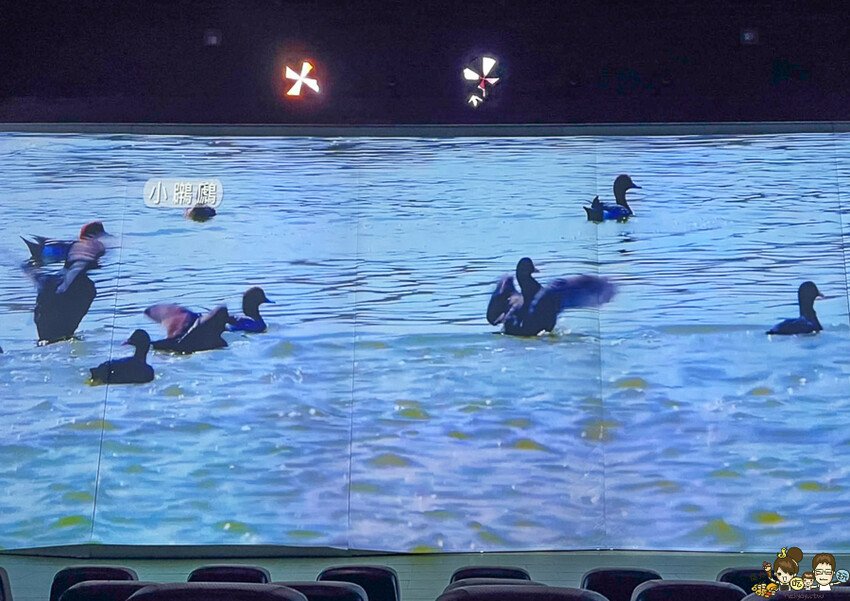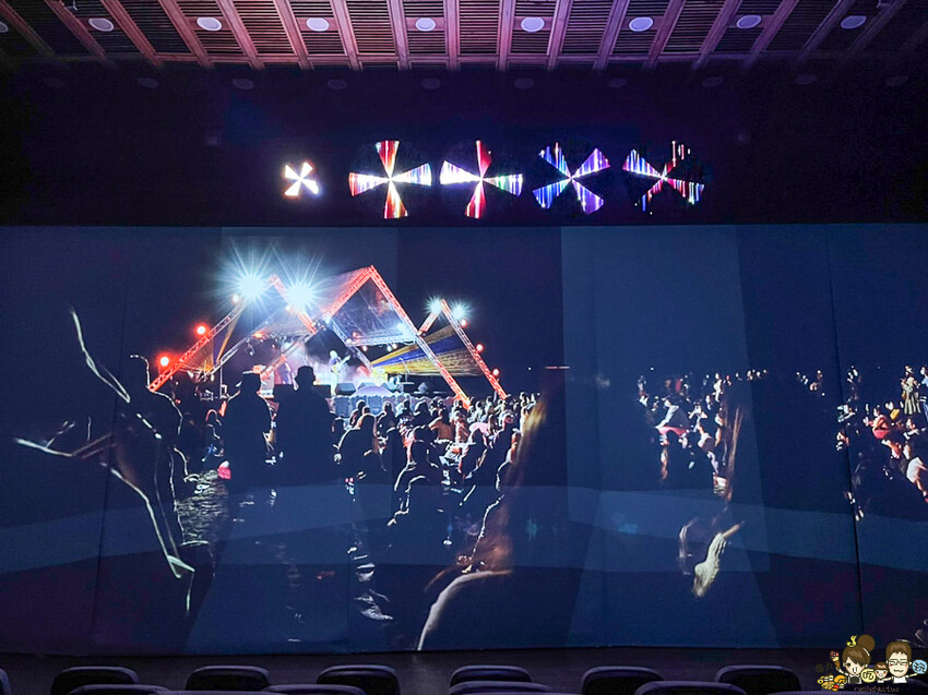 偽3D的布幕觀看影片,最上方還有光雕多媒體影像互動,相當有意思