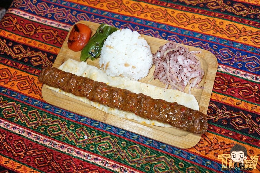 亞達娜烤肉是牛絞肉、辣椒和香料混合後,將肉泥貼在烤肉叉上烤制。