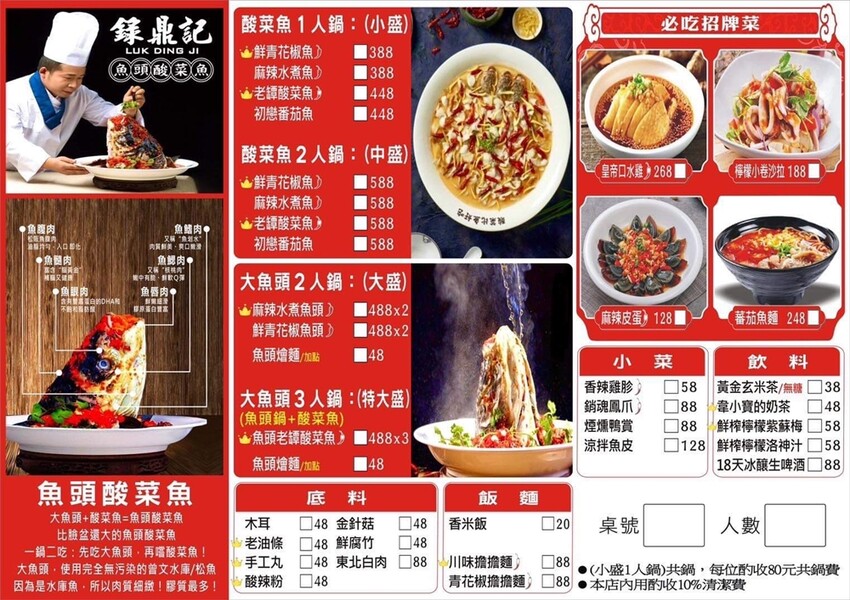 ▲這是「錄鼎記魚頭酸菜魚」的完整菜單,供參考(實際販售品項與價格,以店家現場公告為主)。