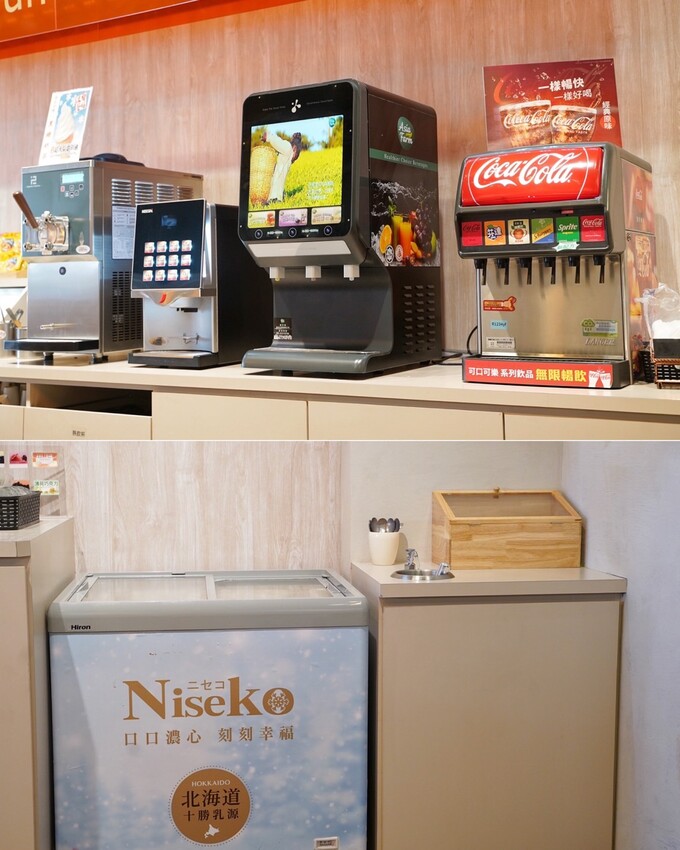 冰淇淋更換成日本北海道Niseko冰淇淋,飲料機也有氣泡飲料機、新加坡知名品牌Asia farm、雀巢咖啡機等等,最後還有不定期更換口味的霜淇淋,整體不論是用餐環境,還是食材,都能感受到大升級!