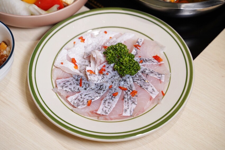酸麻微辣且充滿花椒香氣的湯頭,喝一口身體都暖了起來,魚肉是使用鱸魚肉片,肉質相當鮮嫩!