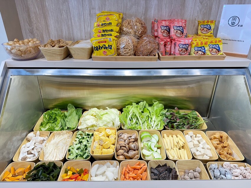 重新裝潢後的「同樂食鍋」,不僅用餐環境變得更時尚,更棒的是多了無限供應的自助吧區,提供將近30種的蔬菜、火鍋料、麵食~