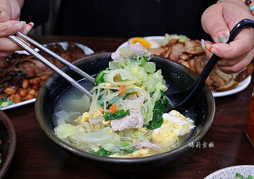 嫩軟的豬肉片的給量也不少,有點餓又不會太餓的時候,來碗豬肉熗鍋湯當正餐也挺飽足地,且營養還很均衡呢。
