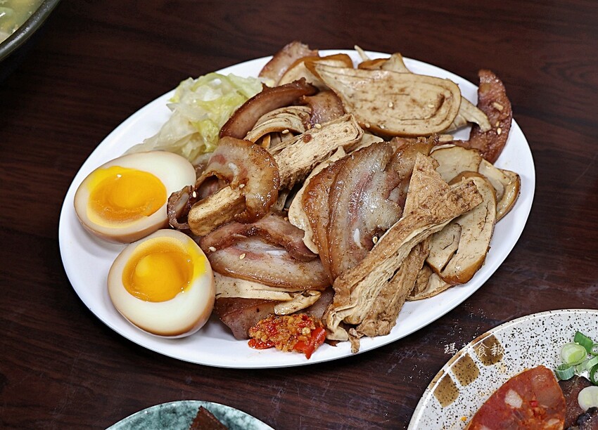 豆包、豆皮及豬頭皮都滷得都有入味,岩漿感的溏心蛋好吃、帶點膠質Q度的滷豬頭皮,更是越嚼越香,沾點蒜蓉辣椒,把多重的香氣層次再提升,不太能吃辣的我也覺得好加分。