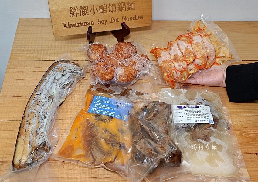 紅燒牛肉、清燉牛肉等調理包,以及醬鴨、豬頭皮、滷牛腱等滷味小菜,全年都有;臘肉、辣味香腸、獅子頭等年節菜色,即日起到除夕都買得到,跟調理包一樣在鮮饌小館粉專下單,到店裡自取或冷凍宅配到府皆可。