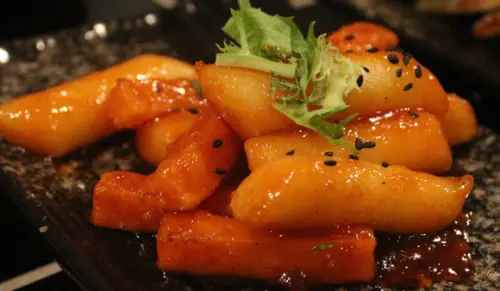 重口味的醬汁吃起來是微辣的程度、而且辣中還帶有些酸甜微鹹,加了起司的辛香醬汁與年糕及雞肉完美融和,吃起來香氣十足且新鮮帶勁,不管是要配飯、配酒都很不錯。