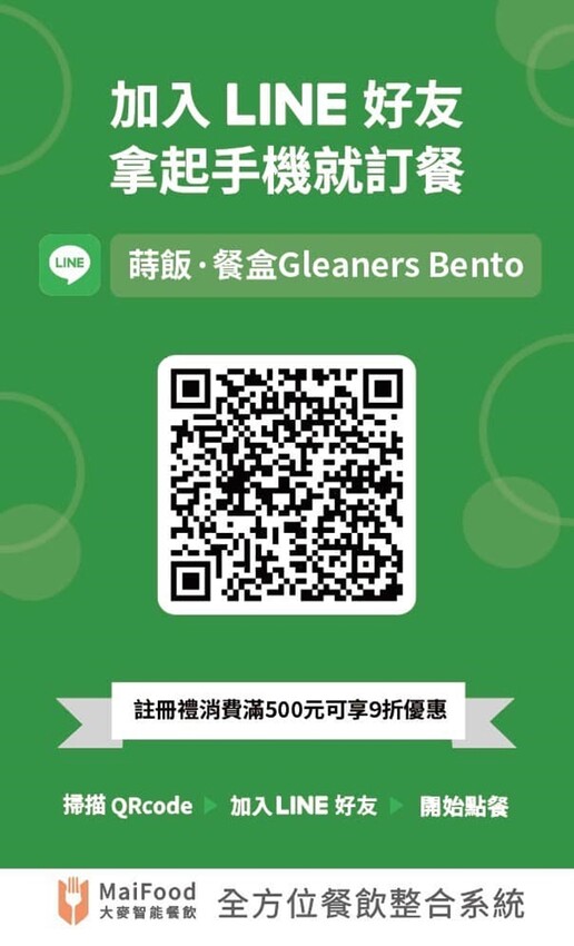 ▲這是「蒔飯•餐盒 Gleaners Bento」的完整菜單,供參考,建議可以加入店家的LINE,最新菜單都會公告在上面(實際販售品項與價格,以店家現場公告為主)。