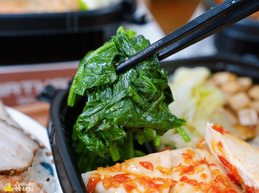 ▲餐盒裡面有豐富的配菜,蔬菜使用半水煮的方式料理,會用鹽、蒜頭、油來提味!讓外食族也能營養滿分,而且份量很實在,吃完一個餐盒肯定就很有飽足感😚