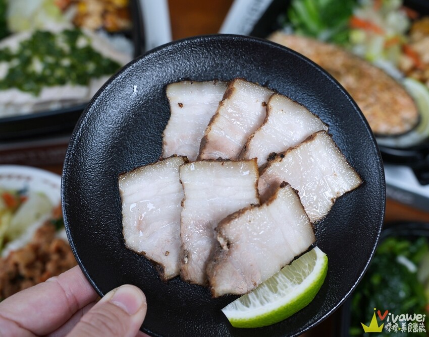 ▲店家使用自行醃漬的台灣溫體豬的豬五花,皮Q脆嫩,濃郁鹹香夠味,也是一道很下飯的主餐!