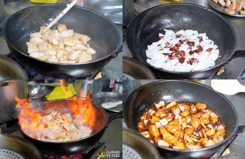▲宮保雞丁的雞肉有浸泡過香料鹽水,可以保住雞肉的溼度和水份,外面會沾粉煎過,加上洋蔥和乾辣椒一起快炒,醬汁還加些烏醋提味,吃起來酸酸辣辣甜甜的😋