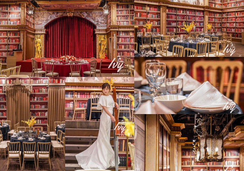 逼真的藏書閣佈景,讓人一秒置身歐洲,這裡不只是新人喜歡的婚宴場地,也是許多歐風婚紗照的攝影點!