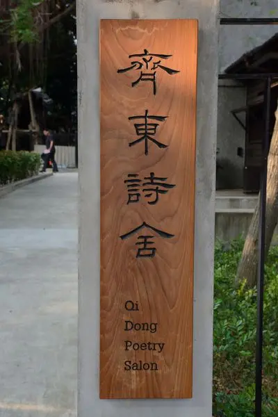 大門的另一側,有一張長條木凳子,椅背上也寫有店名。