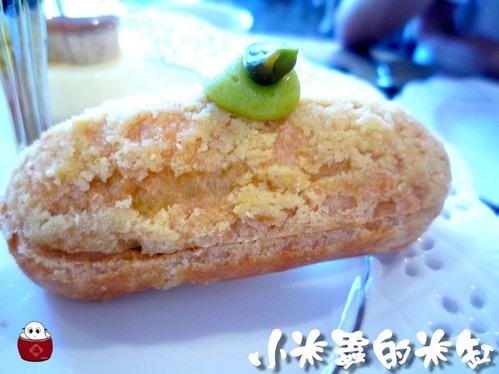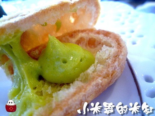 開心果泡芙皮滿酥脆的,裡面的餡料我覺得比較像是卡士達醬,吃起來甜甜的