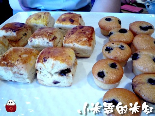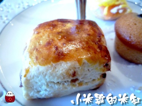剛出爐熱騰騰的司康外表金黃酥脆,吃起來內裡卻鬆軟綿密,葡萄乾更帶了點甜甜的滋味,塗上奶油後,司康更增添了濃郁的奶香味,好吃極了~如果不是前面吃太多,我真想再來一塊><