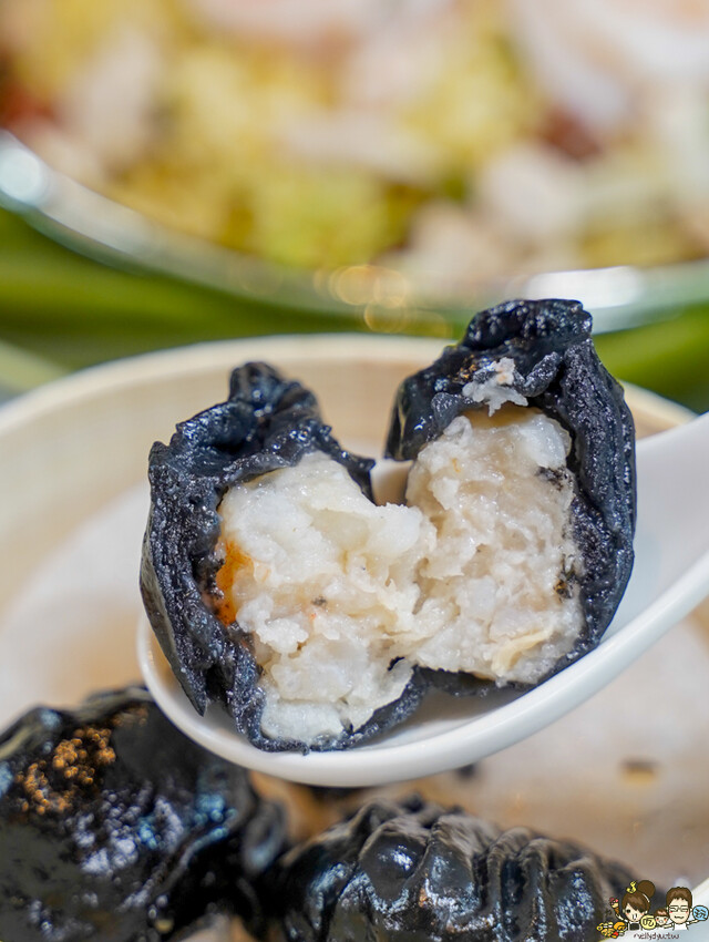 蒸籠小點是獨特黑金色系,使用竹炭特製的外皮,很有亮點
