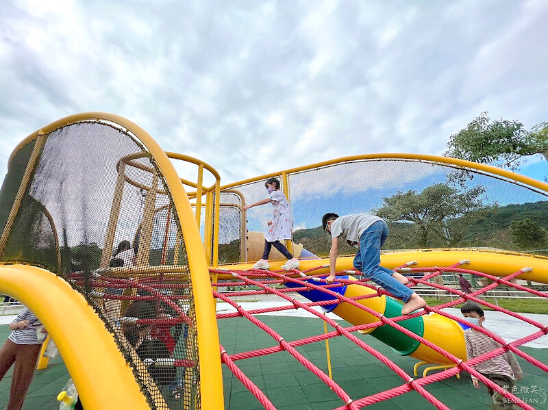 圓弧探索攀爬組,看小孩爬上爬下的很有趣。加上原本的遊樂器具,這裏變的更好玩了