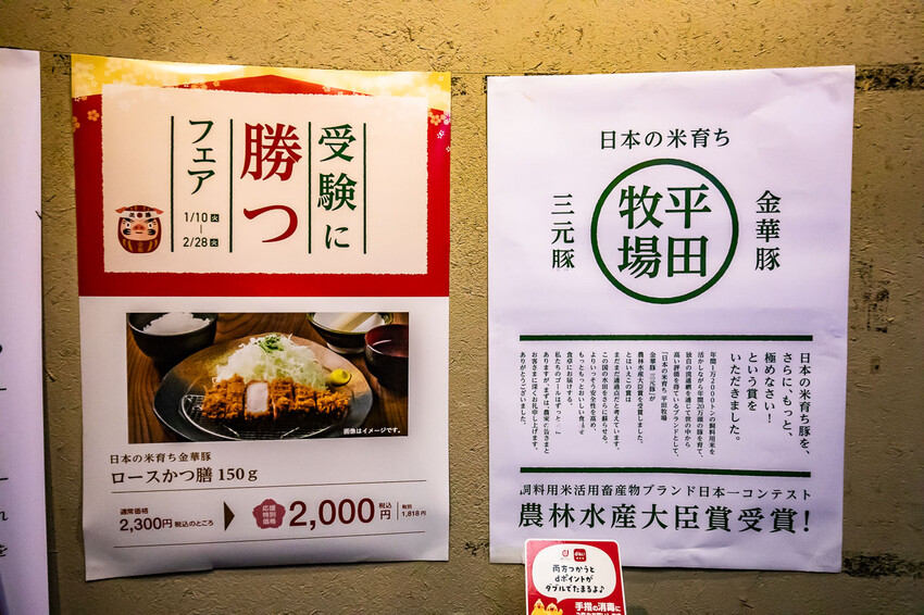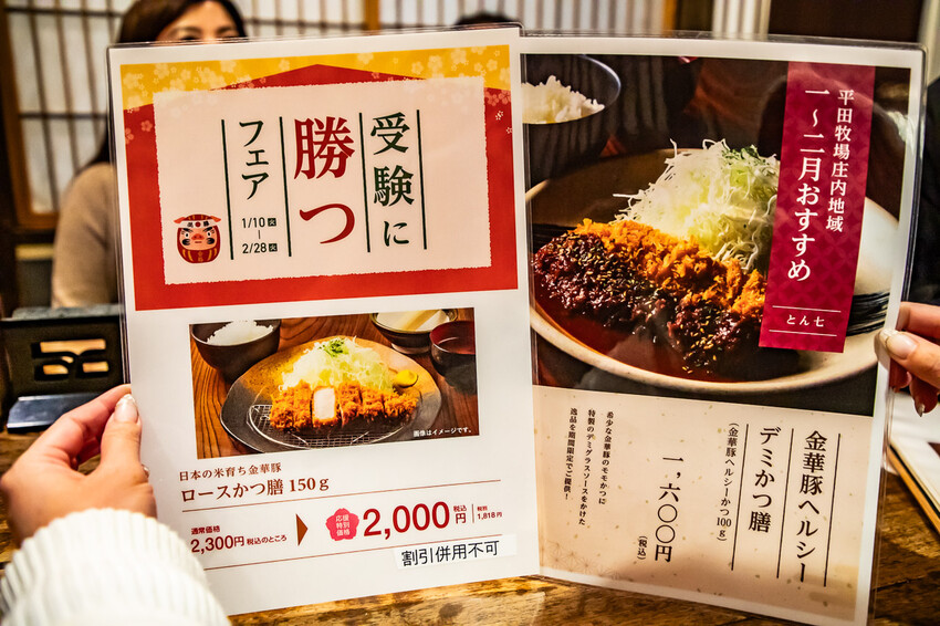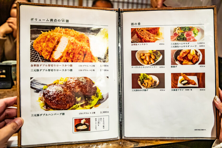 平田牧場的菜單,上面都有豬的品種名字,可以隨自己喜好來選,而且價位真的非常便宜,均價大概落在1500圓左右,換算台幣大概300多而已,如果不夠還可以選加量版的,這種價位能吃到金華豬跟三元豬真的非常划算啦!