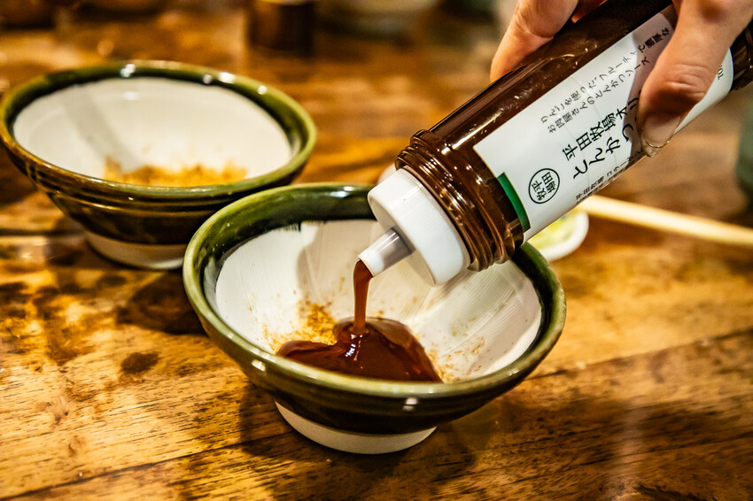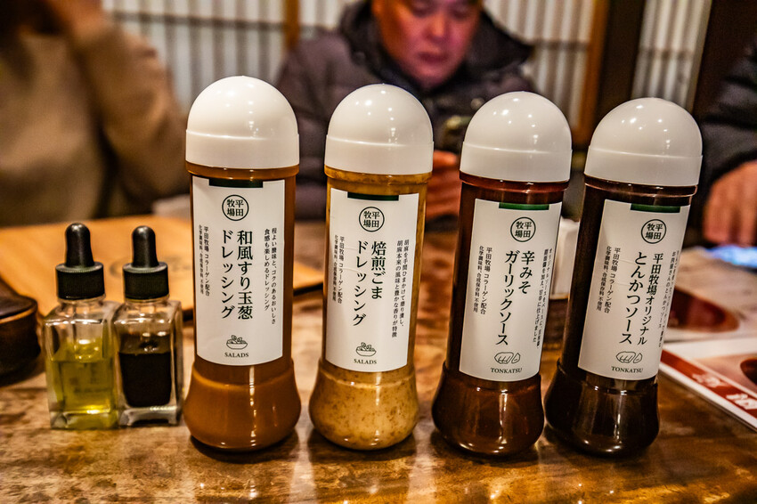 桌上還有很多調味料可以運用,有胡麻醬、洋蔥醬、辣豬排醬等等,還有煙燻醬油、香油呢