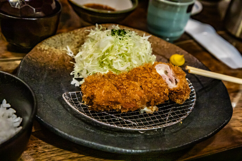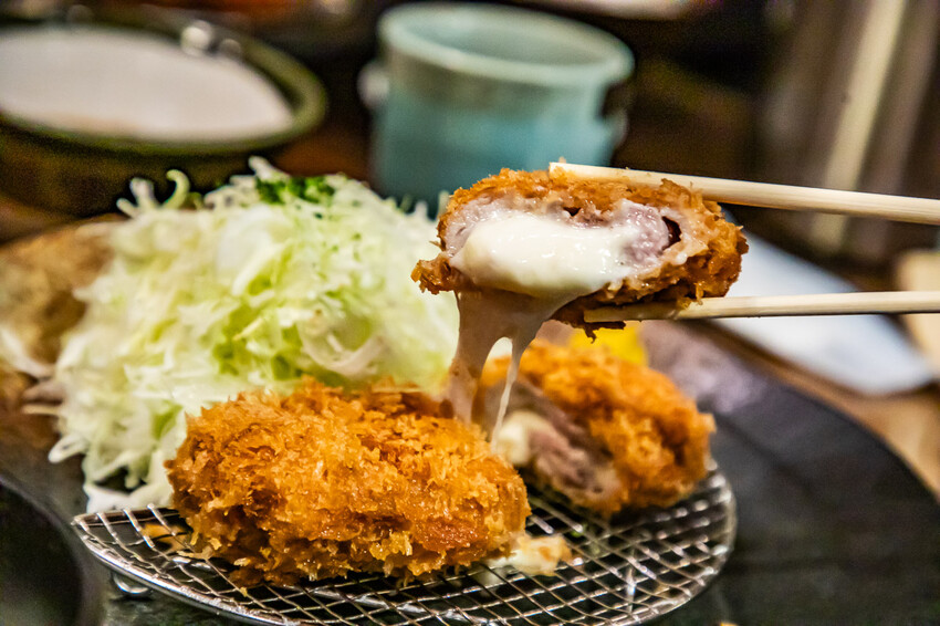 莫札瑞拉起司炸豬排,是用金華豬切薄片包入莫札瑞拉起司,加了起司厚的金華豬完全補足缺點,入口肉感紮實又帶有起司的滑潤口感,超級好吃啦!