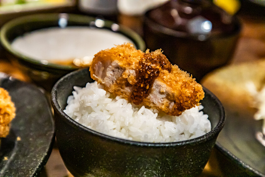 先建議都先吃原味再沾豬排醬,只要沾一點點就很夠味了,鹹香的滋味更能帶出豬排的甜度感受,日本米飯真的是一流的,配豬排簡直讓人停不下來