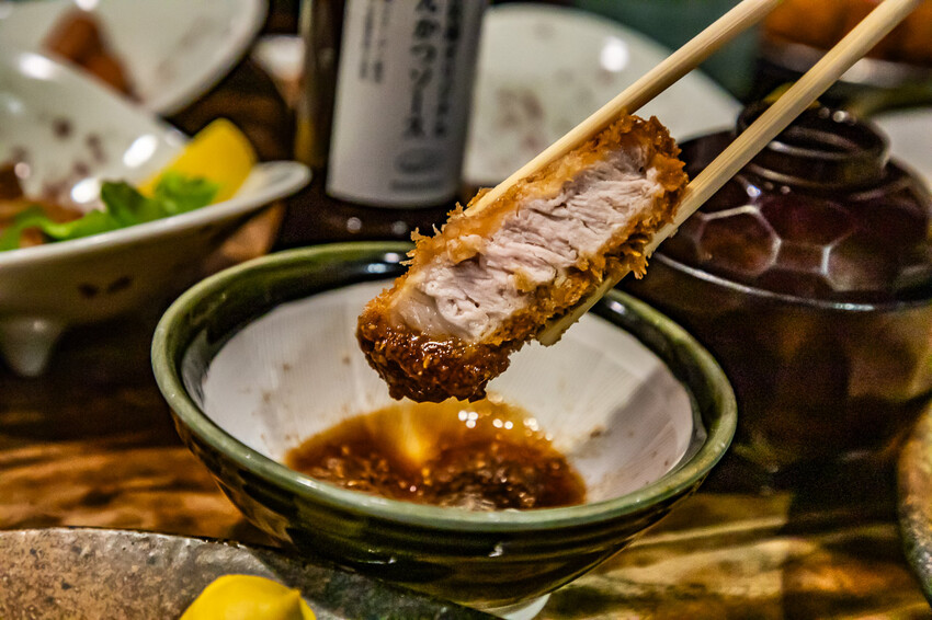 三元豬、金華豬的炸豬排,外觀看起來幾乎是一模一樣,但入口的口感味道可以說是截然不同!沒想到竟然有風味這麼突出的豬排,首先是三元豬,豬排的皮超酥脆,剖面還帶有淡淡的粉紅色澤,而且三元豚吃起來一點都不油膩耶,肉香味也超濃郁,老實說根本不太需要沾醬了,光這樣吃就超好吃!