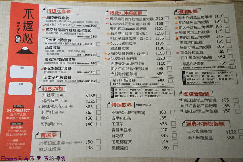 台中超人氣沖繩飯糰【不握松飯糰】菜單品項?
