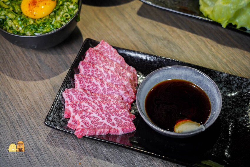 而且每一片燒肉或和牛都可以搭配不同的醬,牛肉的油脂味滿滿的在口中,搭配不同醬料之間的變化,每一口都讓人很驚豔