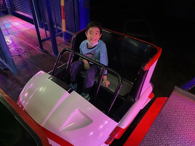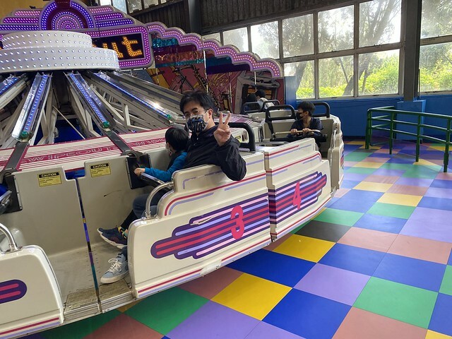 「狂飆幽浮」是寶小銘滿害怕的設施,體驗完離心力的速度感之後,很難不暈頭轉向。