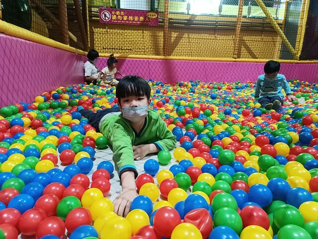「動感樂園」是小小孩專屬的室內遊戲空間,有空氣槍、球池以及多樣的互動設施。