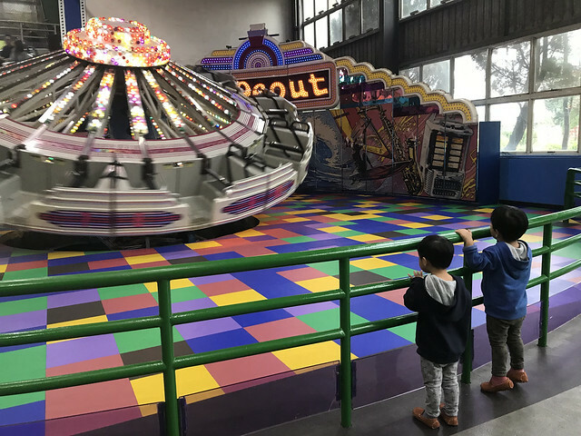 「飛飛機」可以讓小小孩體驗開飛機的樂趣,座位前的操控桿可以控制飛機的升降,十分有趣!