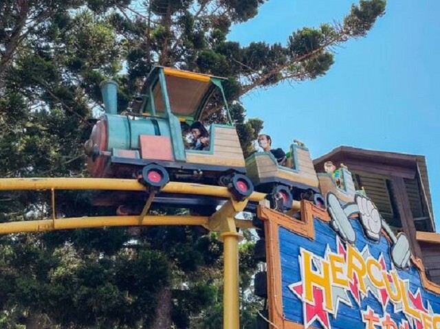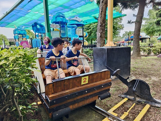 「小人國主題樂園」的經典設施「遊園小火車」,是前往世界歷險樂園區必搭乘的。列車會穿梭在茶園間,風光明媚、綠意盎然,讓人擁有美好的遊玩心情。