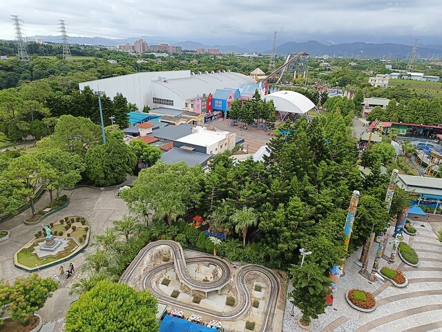 在擎天輪車廂裡可以飽覽小人國主題樂園的全區景色和週邊茶園的景緻。