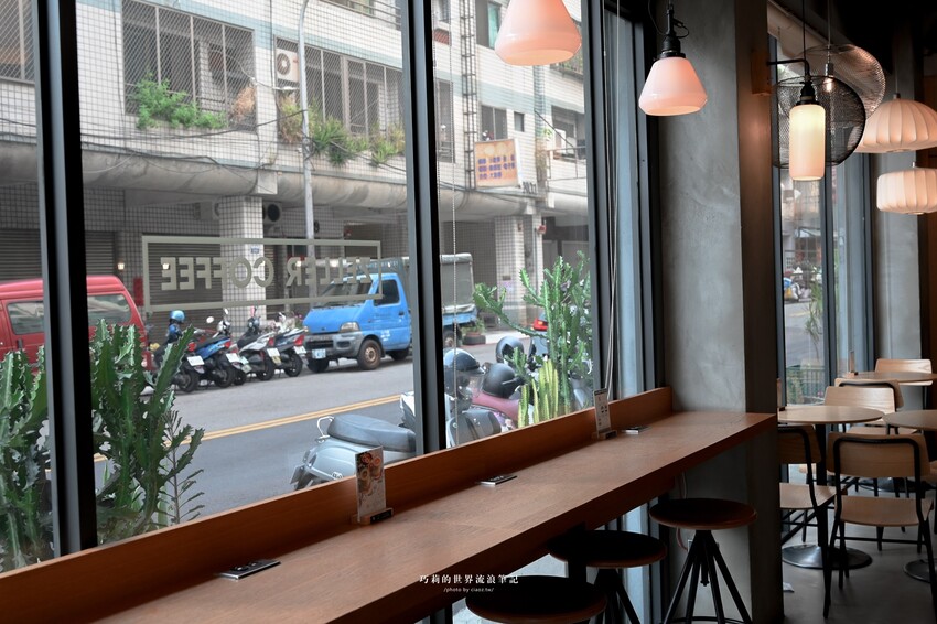 靠窗的吧台座位有提供充足的插座,使用電腦或充電都很方便,還有一面外帶杯牆當背景很可愛~