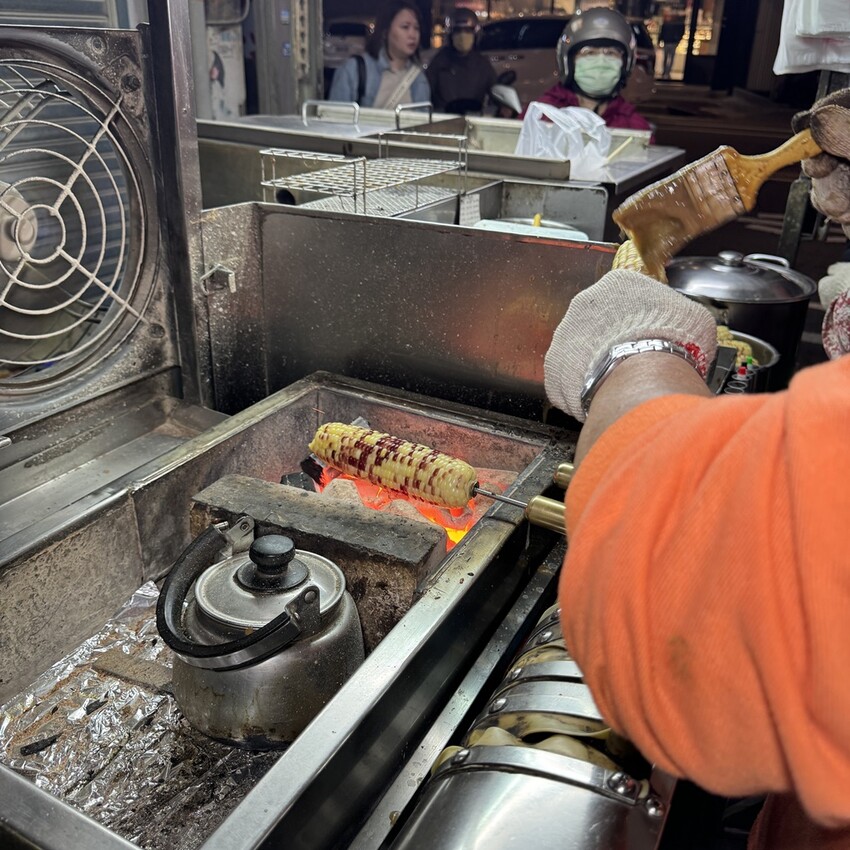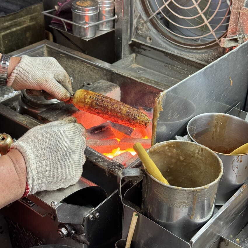 阿姨說她已經在這邊賣了20多年了,除了挑選品質好的玉米以外,使用炭火直烤後再搭配獨特醬汁,口感Q又有沙茶香,深受在地人喜愛