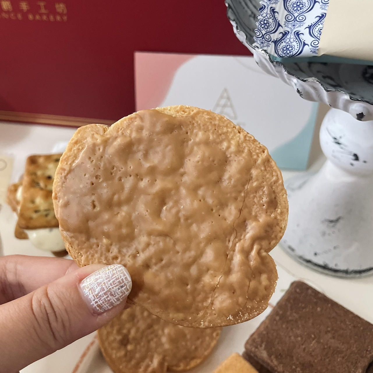 ✓ 法式焦糖烤片一打開包裝就可以聞到濃郁迷人的焦糖甜香酥脆的法國麵包淋上焦糖醬後烘烤吃起來香脆不黏牙 不過分甜膩 有種在吃森X牛奶糖的錯覺 🤣