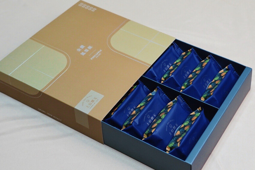 講到禮盒台灣最有人氣莫過於鳳梨酥!這款金鑽鳳梨酥配色有品味,把莫蘭迪色融入到包裝色,跳脫以往鳳梨酥給人的既定印象,不是紅就是花,簡約設計加上沈穩配色,送人很有面子~