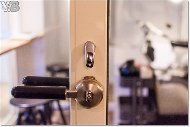白色大門上的復古圓形手把也是超有FU~