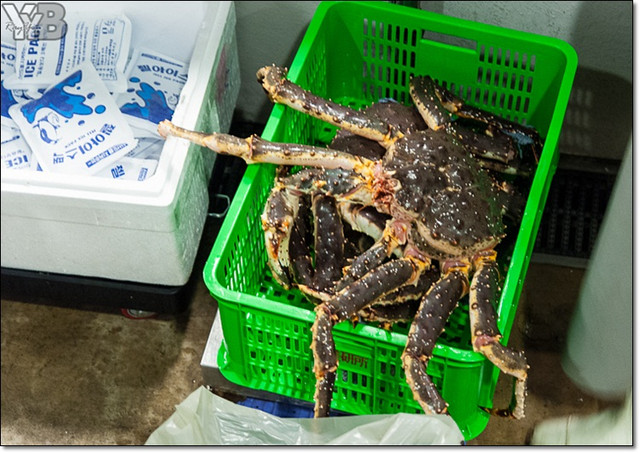 到的時候剛好看到工作人員將冷藏運送的帝王蟹拆封放入水槽~