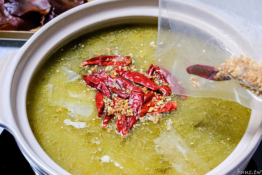 我這天是先用開水煮沸,再將香料油包、酸料包跟辣椒包加入鍋內,小火煮個3分鐘。
