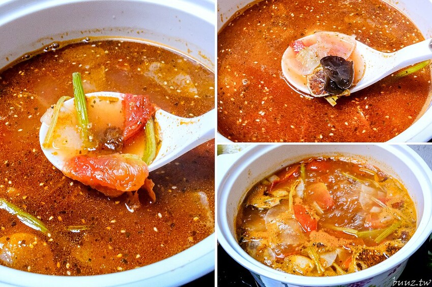 喝起來的辛香料味道的確比坊間火鍋店的番茄鍋來得重,加入的檸檬乾跟話梅可以中和整體的酸度。