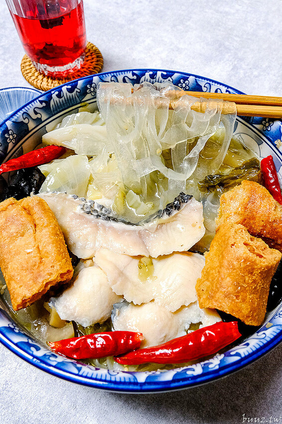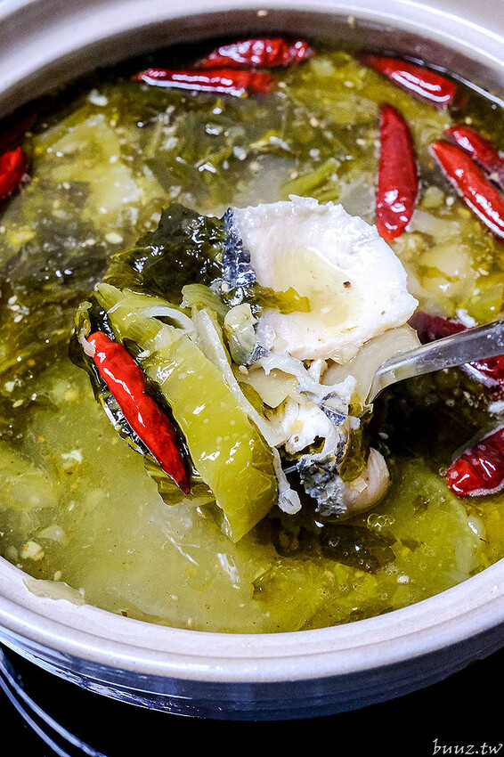 魚片搭配著酸菜、白蘿蔔、黑木耳等帶點脆口的配料咀嚼起來更能增添不同層次感,又酸又辣的酸菜魚大口吃真的非常過癮。
