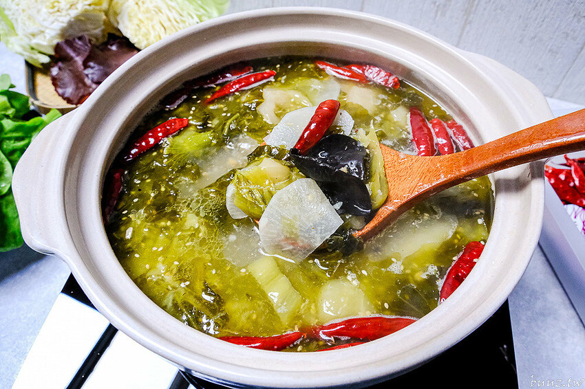 隨著湯頭煮沸煮滾,整個湯頭的酸辣香氣都飄出來惹~讓人不由自主的吞了幾口口水,哈哈哈~