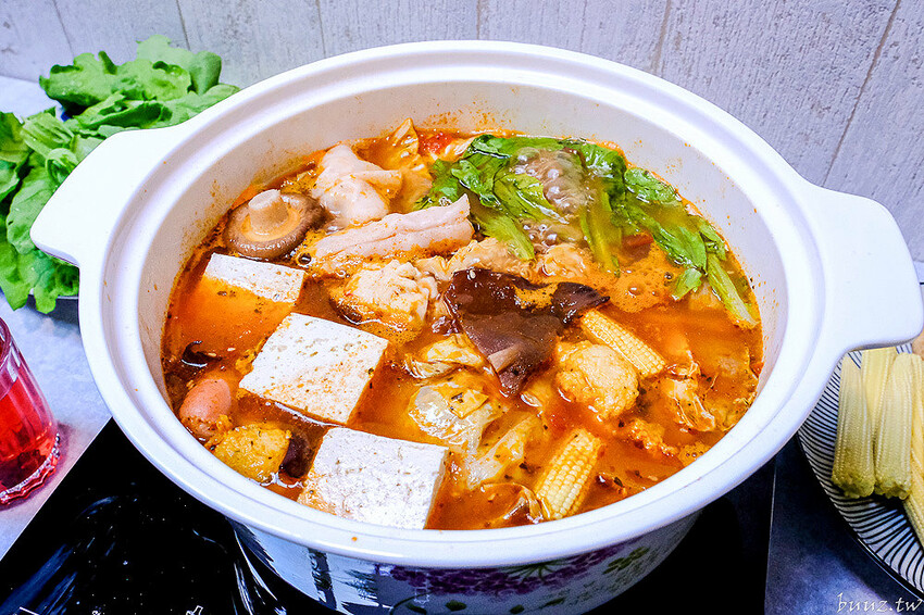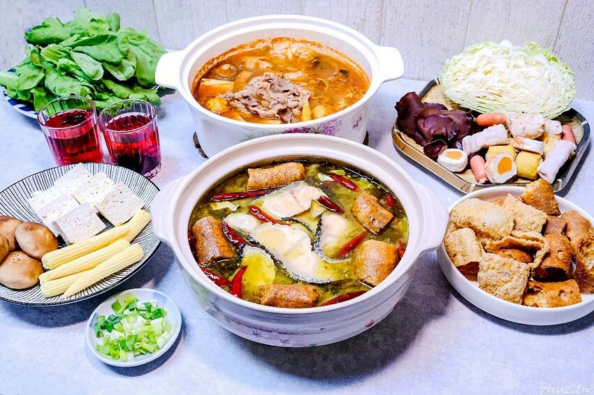 兩人份的酸菜魚冷凍包可以煮一大鍋,搭配火鍋料、蔬菜等,一餐吃下來綽綽有餘。