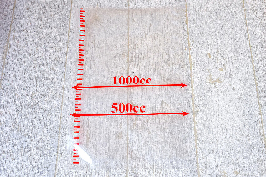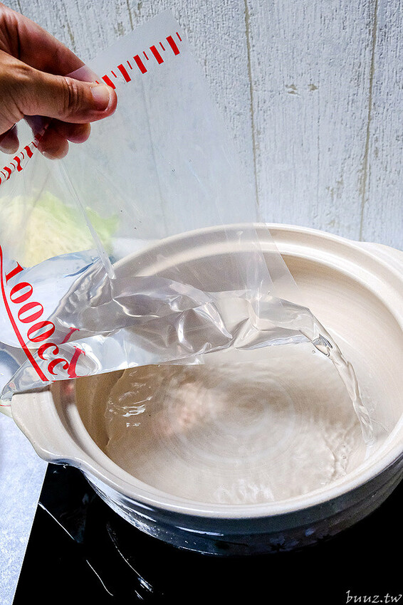 而且還很貼心的附上一個量水袋,分別有1000cc跟500c c的刻度,這樣就知道煮湯的水量要抓多少。