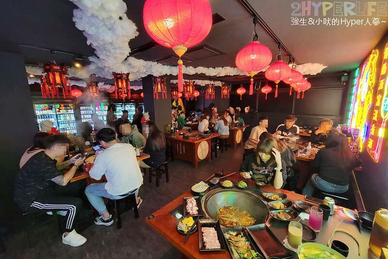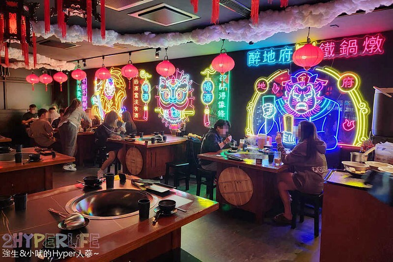 走進店內前原本以為氣氛會不會很陰森啊(怕.jpg),沒想到用餐氛氛很歡樂耶哈哈,整體裝潢陳設加上霓紅燈飾讓人有種來到潮潮的古代仙界場景感😂